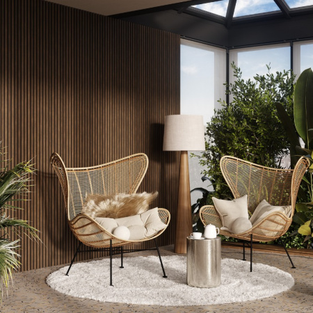 Декор панелей – рейки из черного мебельного МДФ, облицованные шпоном: устойчивы к деформации, привносят в интерьер умиротворение и гармонию, сохраняют связь с природой.